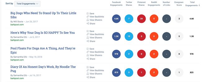 你可以在Buzzsumo中输入竞争对手的域名,查看他们表现最好的内容、所有社交分享内容以及内容在哪里被分享的信息。你也可以用它来发现其他生产与你的领域相关的内容的网站。
