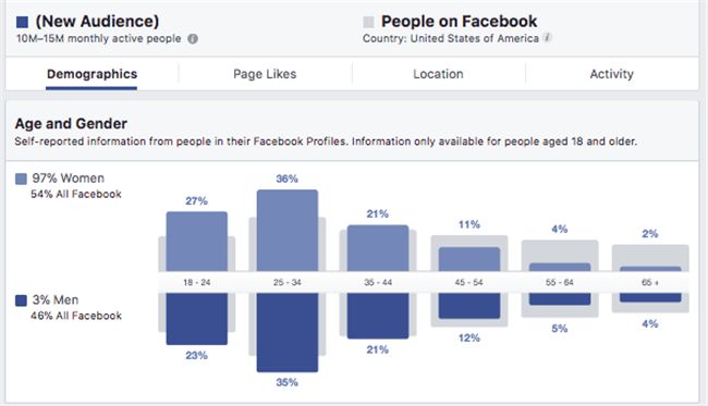 Facebook Audience Insights(通过你的Facebook Business Manager账户访问)可以为你提供关于Facebook上的受众的各种信息。对于大多数老牌竞争对手,你甚至可以看到他们的Facebook页面的粉丝细分信息,包括年龄、性别和地理位置。