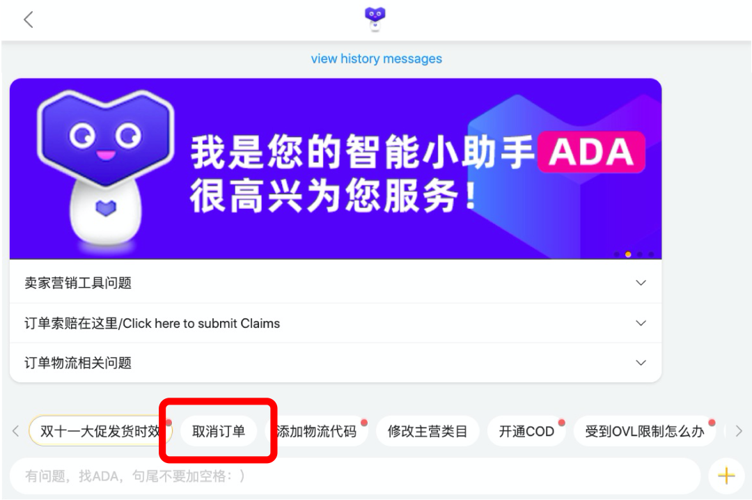 A:关于店铺可能被下线的问题,商家可以到帮助中心底部找到ADA,回复关键词【店铺下线】,它将24小时在线为您解决问题。