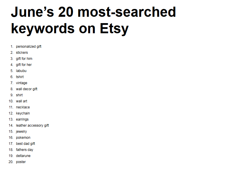 所以我们查看了Etsy上目前最热门的1000个关键词。