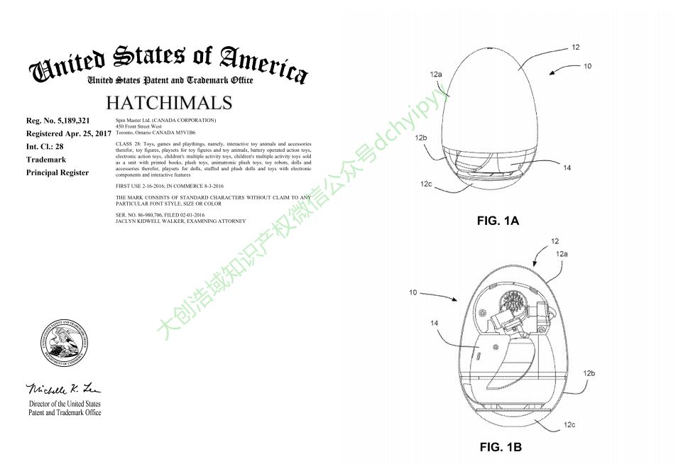 (魔法蛋,上图左边为“HATCHIMALS”美国商标,右边为魔法蛋美国专利图)