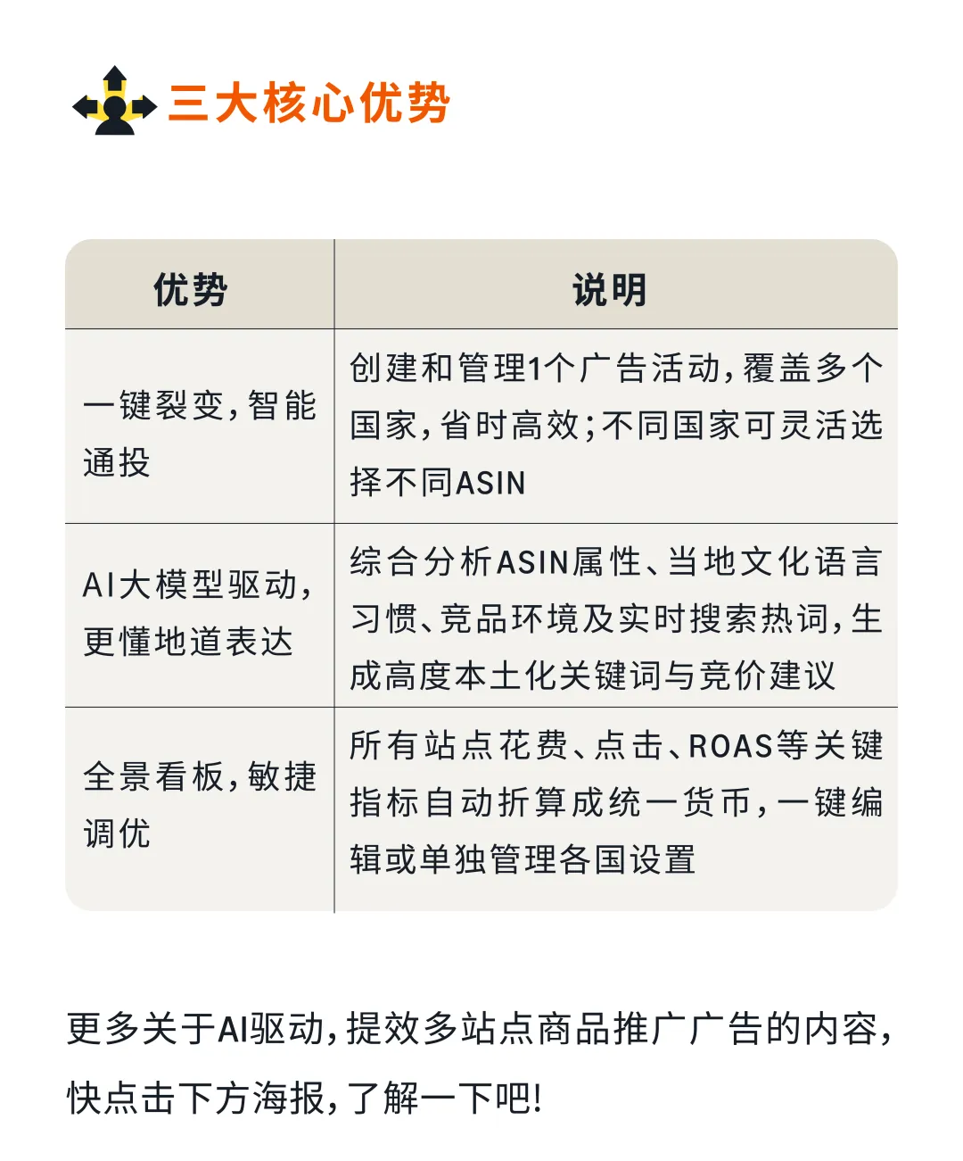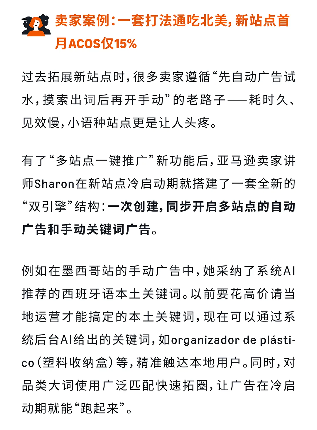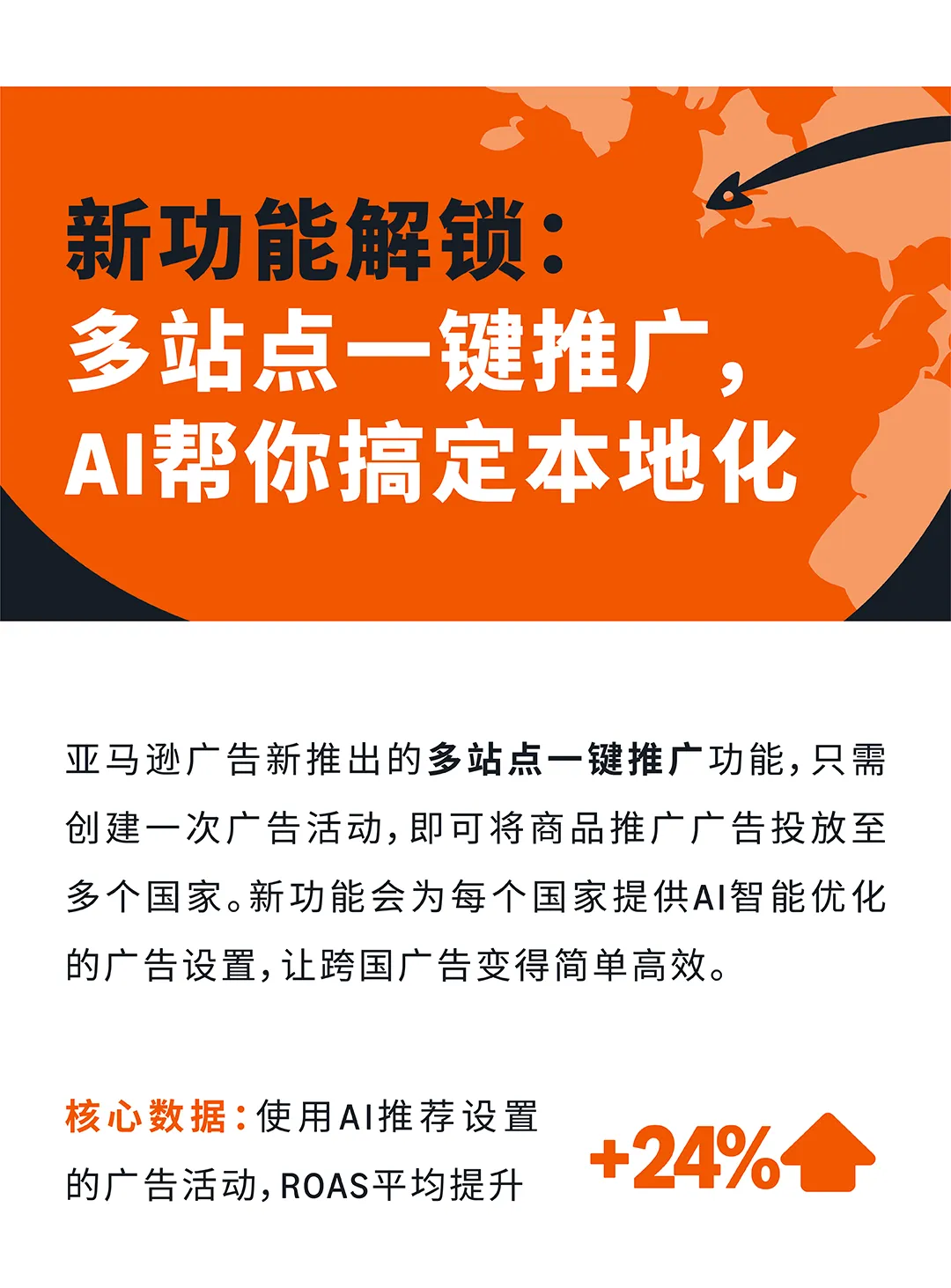 多站点广告投放是家居卖家实现全球增量的核心路径,但许多中小卖家面临三大痛点:效果不确定、本地化门槛高、团队资源有限。亚马逊广告"多站点一键推广"新功能通过AI智能生成本土化关键词与竞价,帮助卖家一次创建、多国投放,使用AI推荐设置的广告活动ROAS平均提升+24%。