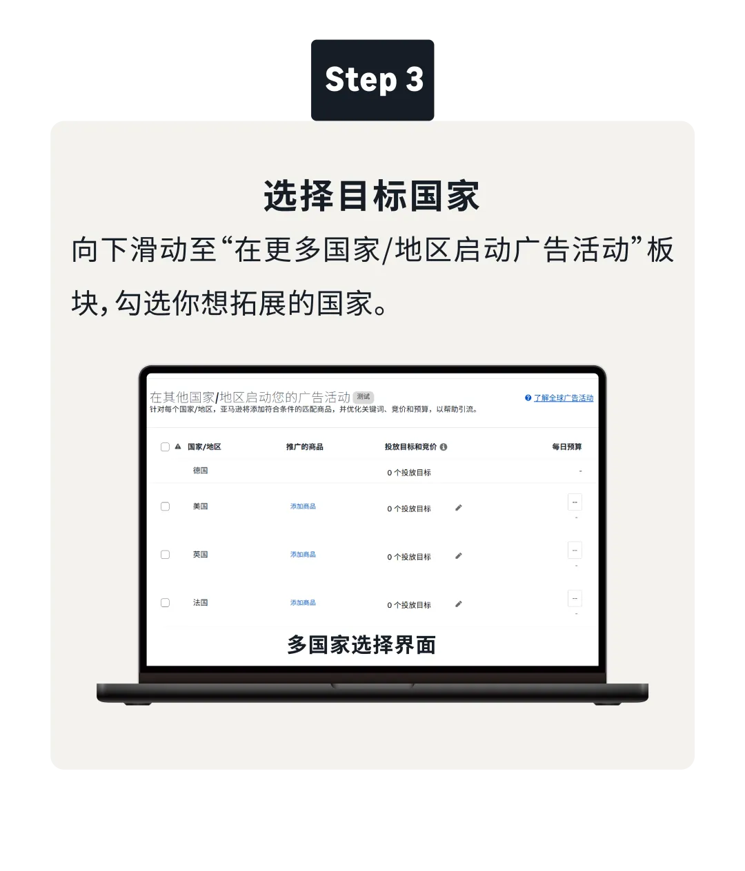 三步行动清单:今天10分钟选定目标站点与ASIN组合;本周1小时创建多站点广告活动并采纳AI推荐设置;两周后根据各站点ROAS数据调优预算分配。新手建议从快速增量组合起步,积累经验后再拓展欧洲或澳洲组合。