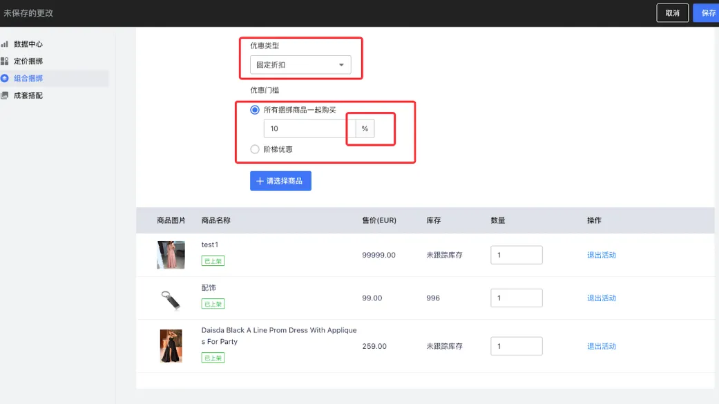 👉「捆绑销售」插件:让卖家可选择定价捆绑、组合捆绑、成套搭配来进行捆绑销售。