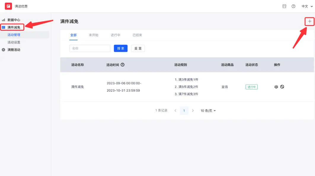 👉「满送优惠」插件:可设置满件减免、满额赠送等多层级优惠,智能排除冲突商品、限制减免次数等。