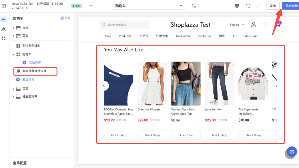 👉「智能商品推荐」插件:覆盖全购物流程,支持 AI 个性化推荐或自定义规则精准推荐关联商品。