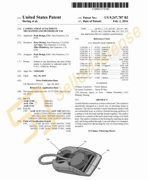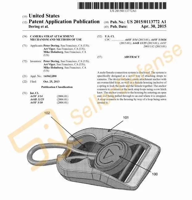 案件涉及发明曝光,这是一种相机背带连接装置。该装置包括一个带有包覆成型环的公连接锚,以及一个包含弹簧的母外壳,该弹簧用于将公连接锚和母外壳锁定在一起。