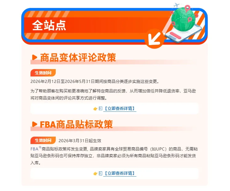 一、2026年2月12日-5月31日,亚马逊将按商品分类逐步调整商品变体间评论共享方式,核心目的是让顾客更精准了解特定商品反馈,降低退货率。
