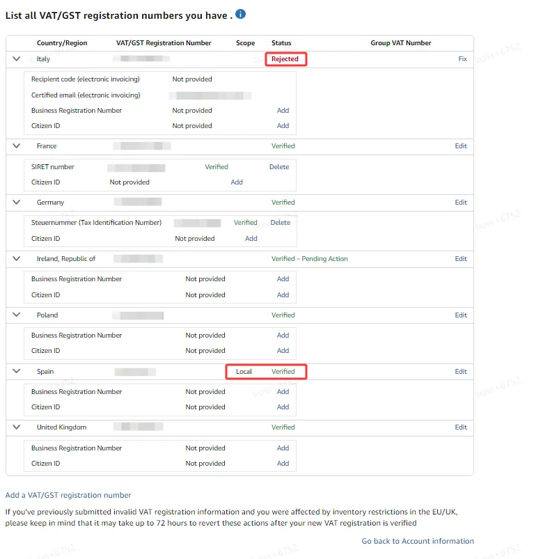 ① 自查VAT,确认VAT登记信息的有效性,及时更新到期信息,其实这个界面和“Account Health”都可以,反正有问题的话亚马逊会在邮箱以及后台都提醒你的