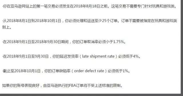 今年,亚马逊限制玩具和游戏类目产品入库日期提前一个月,时间为2018年10月17日至2019年1月5日。而玩具作为目前亚马逊平台最热销的一个类目。为了防止卖家在旺季集中跟卖,所以亚马逊只允许符合条件的卖家在旺季销售相关产品。