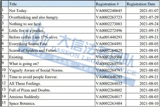 此案为版权维权,共涉及36个版权维权,原告曾在24年发起9起维权案件,可见维权力度之大,以下是涉及的版权信息,跨境卖家们尽快检索下架,避免造成更大的侵权损失!