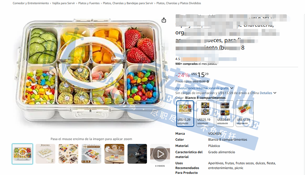 原告来自福建的国人卖家,旗下有一款便携式容器,该产品采用食品级安全材质制造,密封盖设计能保持零食新鲜。分区结构便于分类存放不同零食;加固把手使产品便于携带,无论是客厅待客还是户外野餐,都能轻松满足使用需求。除此之外,还有一款碎肉器,采用独特的刀片结构设计,能在短短几秒内将各种肉类切碎成理想大小。它不仅适用于处理猪肉、牛肉等常见肉类,还能轻松应对胡萝卜、土豆等硬质蔬菜的加工需求。
