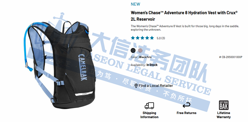原告是位于美国加州佩塔卢马,一家在户外饮水装备领域深耕的品牌。创始人Michael Eidson是一位军医,同时也是一名热衷于自行车运动的人。为了在运动时能够方便地补充水分,他巧妙地将医用橡胶软管和输液袋结合,制作成了一个“个人饮水系统”,并将其缝制在运动服的背部在不停止运动的情况下,随时饮用水,广泛应用于登山、骑行、跑步、徒步旅行等各种活动。