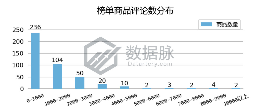 在上周登榜 Sports & Outdoors 品类 Hot New Releases 榜单的商品中, 单个商品拥有的最大评论数为8078.00条,最小评论数为0.00条,平均评论数918.53条,评论平均星级4.28星。 其中,47.61%的上榜商品评论数不超过500条,此外仅有1款上榜商品的评论数超过了5000条,占上榜商品总数的0.68%。同时,骆探长(shujumai.com)发现,与前几期分析相比,该周进入Hot New Releases榜单的商品平均评论数相差无几,平均星级不变。