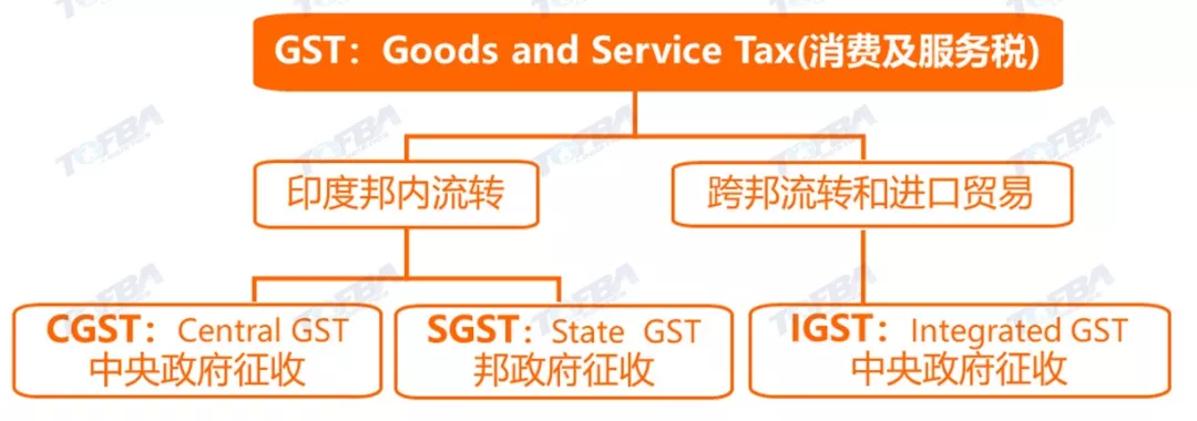 GST根据商品或服务在印度各邦内流转还是跨邦流转的不同,又区分为CGST、SGST、IGST三类: