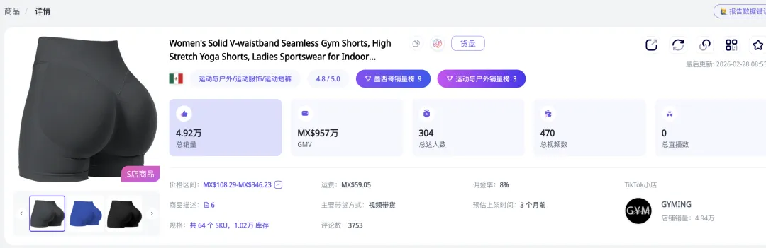 而且,近期,不仅瑜伽服在美国爆卖,另一款瑜伽裤在欧美多个国家同步起量,包括英国、德国、西班牙,甚至墨西哥、巴西。