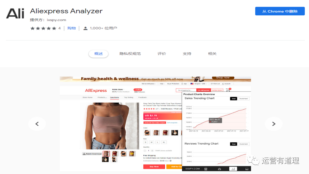 访问 Chrome Store 并搜索 aliexpress analyzer