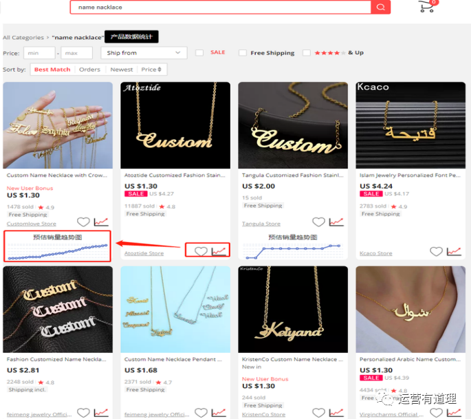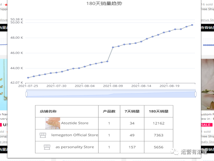 每个产品都提供180天销量/预估销量趋势图加载展示,方便快速判断产品情况