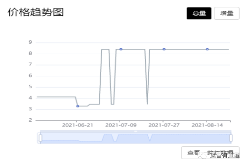 这个产品是近期走量比较好的一个产品,结合价格趋势图和销量趋势图可以看出,这个产品也是走低价累积好评,后期提价收割获利的方式。