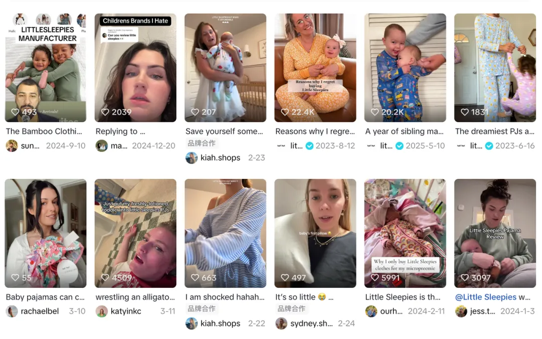 但这套逻辑在TikTok上不太能行得通,Little Sleepies在这里展现出极强的“真实性”与“病毒感”。