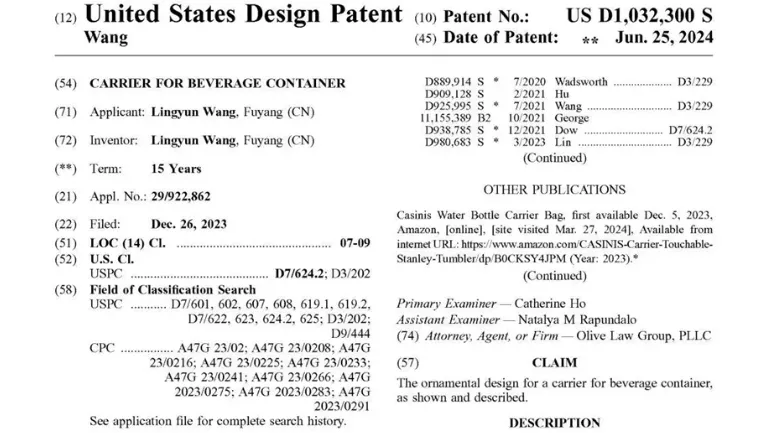 涉案专利:US D1,032,300 S