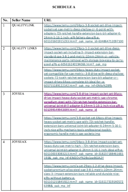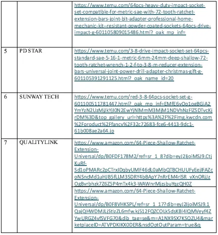 原告 Changzhou Yichen Trading Co., Ltd 是一家贸易公司, EACELIY 套筒扳手套装是一套常用于汽车维修拧紧或松开螺栓、螺母的维修工具,涉案版权图如下: