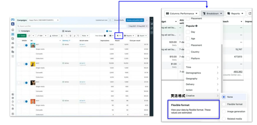 如果广告主目前在营销策略中使用了灵活广告格式,现在可访问报告细分数据,并据此优化今后的营销活动。