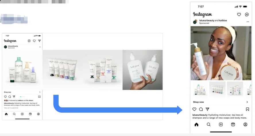 设置:精品栏格式的进阶赋能型目录合创广告需要使用精品栏广告的创建路径特意完成设置,并将“精品栏”选为L1的首选格式。而对于本产品,如果在进阶赋能型素材中启用优化功能,广告主就能创建进阶赋能型目录轮播广告,动态完成格式转换。 广告投放:精品栏格式的进阶赋能型目录合创广告将始终按照指定格式(精品栏格式)进行投放。进阶赋能型素材转换方案将动态进行投放,但前提是Meta官方发现为各位用户更改素材时有望提升广告表现。
