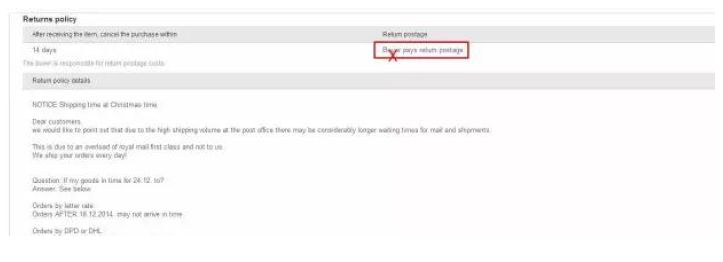 4. 提供30 天退换政策(Seller Pays return postage),同时填写退换货政策详