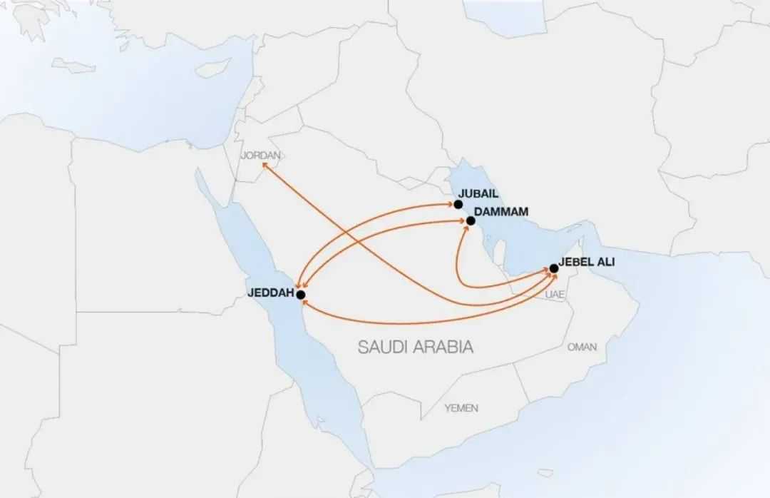 赫伯罗特发布公告称:正在引进从杰贝阿里(Jebel Ali)、达曼(Dammam)和朱拜勒(Jubail)到吉达(Jeddah)的陆地服务走廊。并且这项陆路服务将与吉达(Jeddah)出发的海上班轮服务连接。