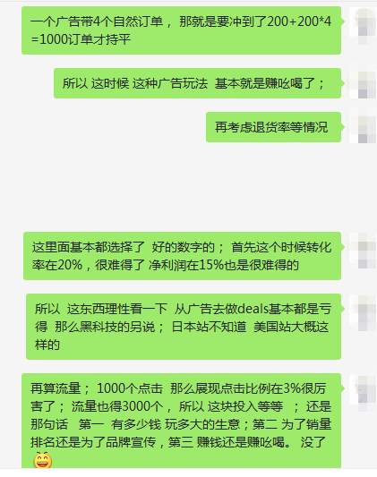 所以到底赚不赚钱还是要理性看待的,最后的结论是广告与销售额的比例在15%以下才基本赚钱。再就是看广告是否在本次的deals里面引起了自身店铺产品之间的捆绑销售与多数量销售。