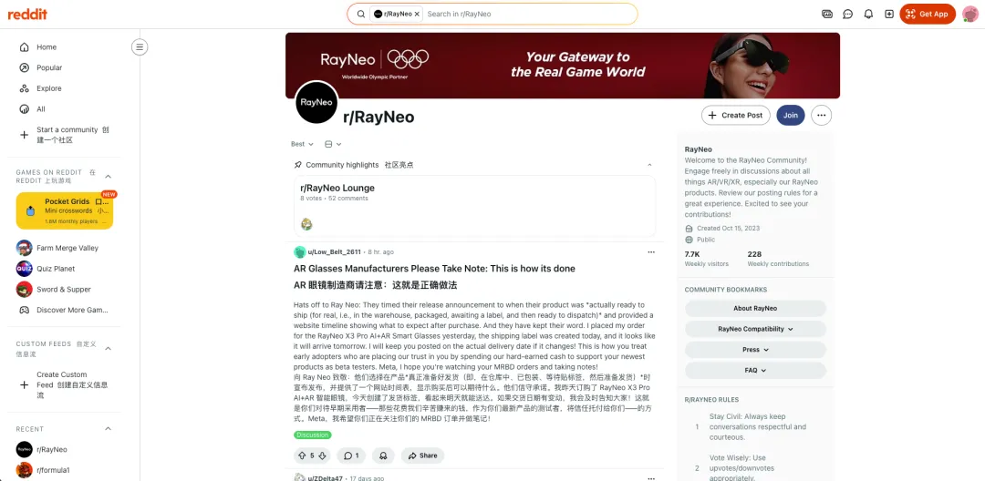 RayNeo的用户运营策略构建了一个基于共同兴趣和价值观的社区生态。