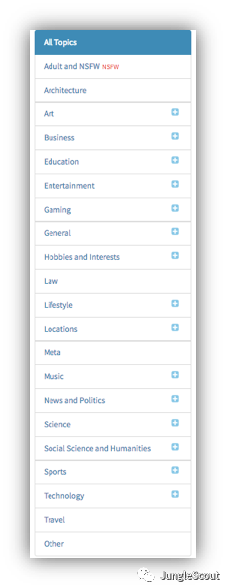 Snoopsnoo平台把Reddit小组按照大的Topic进行了分类: