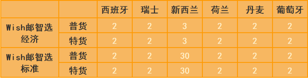 和其他路向一样,WishPost智选西班牙、瑞士、新西兰、荷兰、丹麦、葡萄牙6个国家路向的物流时效与市面上主流的类似的物流产品时效相当,尤其是“Wish邮智选标准”渠道使用的都是提供妥投服务的挂号类物流,更适合旺季使用哦~