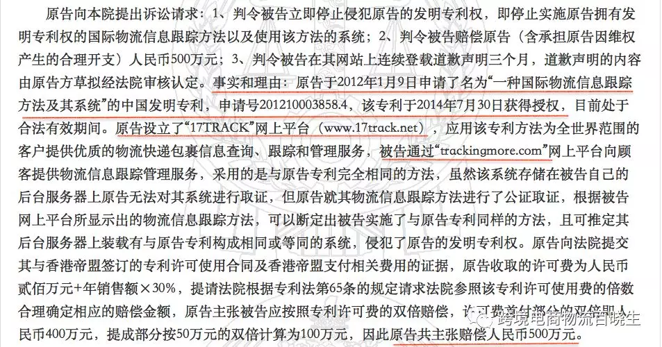 重磅,核心专利技术被抄袭,17TRACK向Trackingmore申请索赔500万!