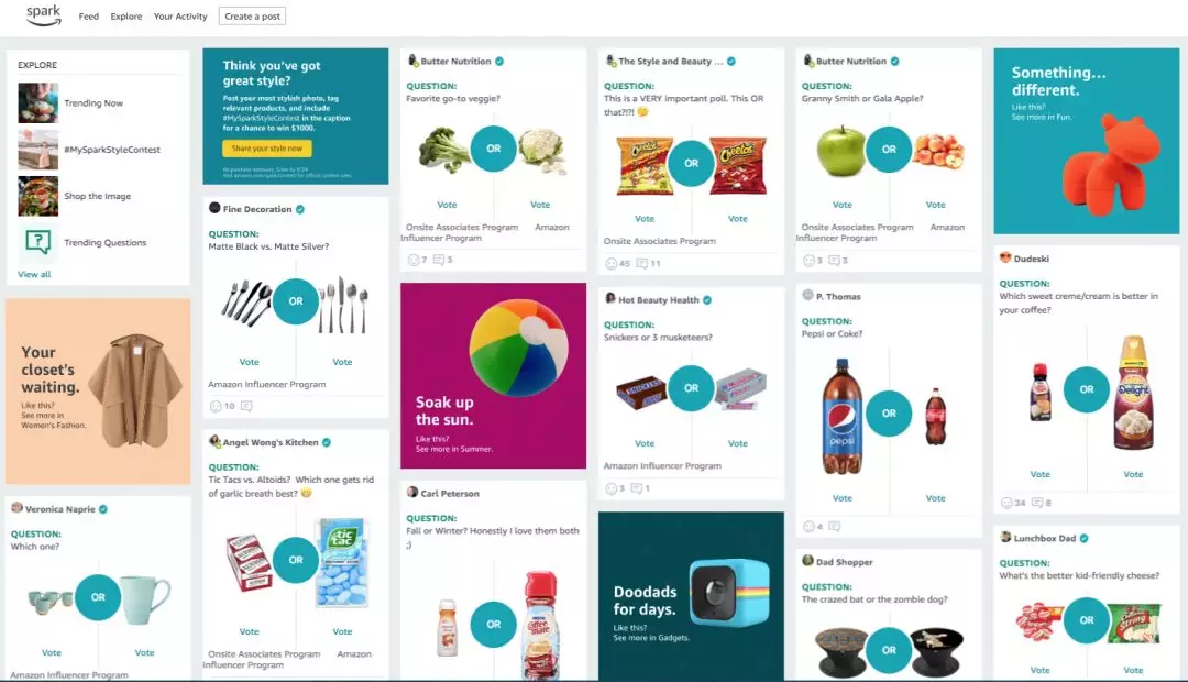 除了Trending and Poll这个版本之外,其他的Feed其实也有投票的内容,会根据使用者提问时使用的标签,Amazon的演算法会自动让该则贴文出现在合适的主题中。