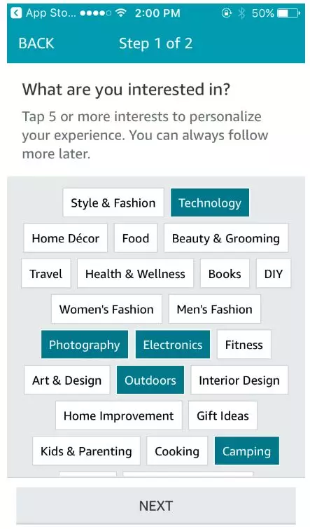 当使用者第一次造访Spark的时候,Amazon会要求使用者至少选择5个他们感兴趣想要关注的话题,而Amazon则会根据这个喜好来创建属于这个使用者相关内容的Feed。