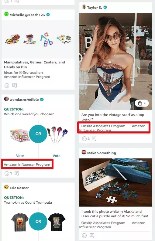 眼尖的人,你可能还会注意到,有些Post 底下会注记「Amazon Influencer Program」或是「Onsite Associate Program」或是二者皆有。
