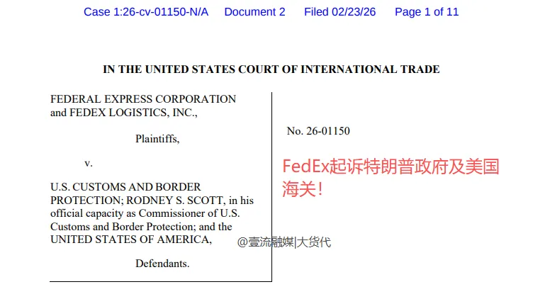 另一起,则是来自于一位货代对FedEx提起集体诉讼,指控FedEx违反合同,并同样要求退还IEEPA关税及利息....