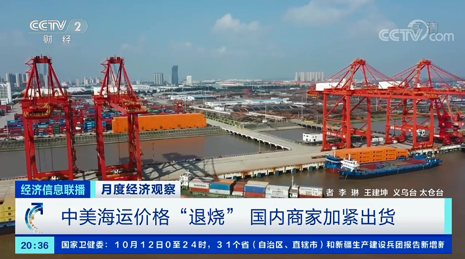 浙江义乌国际商贸城商户 魏世荣:运费最高的时候只有30%的大客户的订单存活,其他的客户一直在观望。现在运费降下来了,所有的客户都已经恢复,订单量在逐步上升,从最低谷到现在上涨了50%。 江苏太仓某贺卡企业副总经理 徐国英:往年10月份会相对轻松一些,但今年一直在加班加点地赶订单。 (来源:央视财经、证券时报)