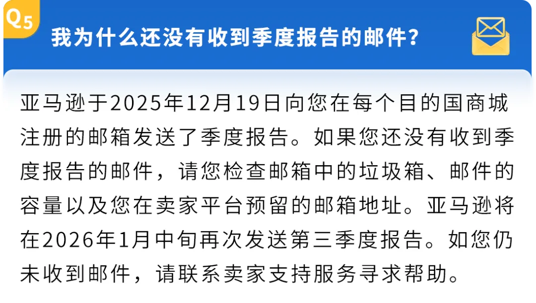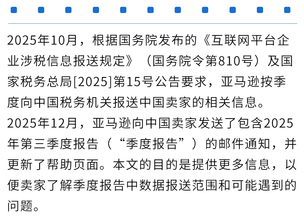 亚马逊关于2025年第三季度中国卖家税务信息报送的常见问题说明