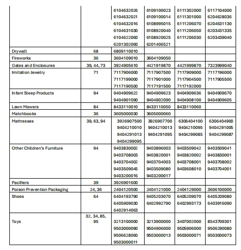 很多卖家存在一个致命误区:认为CPSC仅监管儿童玩具。事实上,此次新规中,CPSC与CBP联合发布了包含约600个HTS编码的指引清单,涵盖各类高风险、受强制性安全标准约束的产品,覆盖范围远超预期。