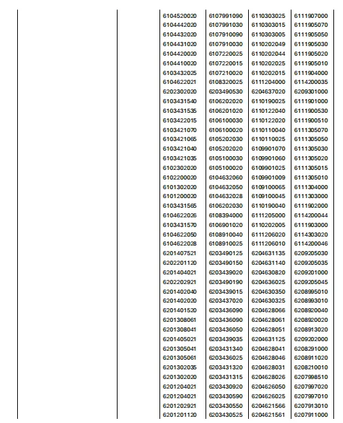 HTS编码清单