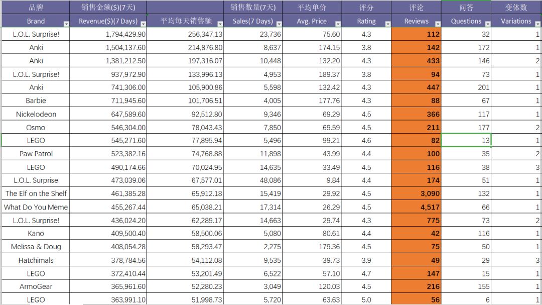 可以预估到玩具类目的新品总量是比较多的。评价数量和消费者需求比起来,需求欲望大小摆在了评价数的前面(在不同类型的产品面前);