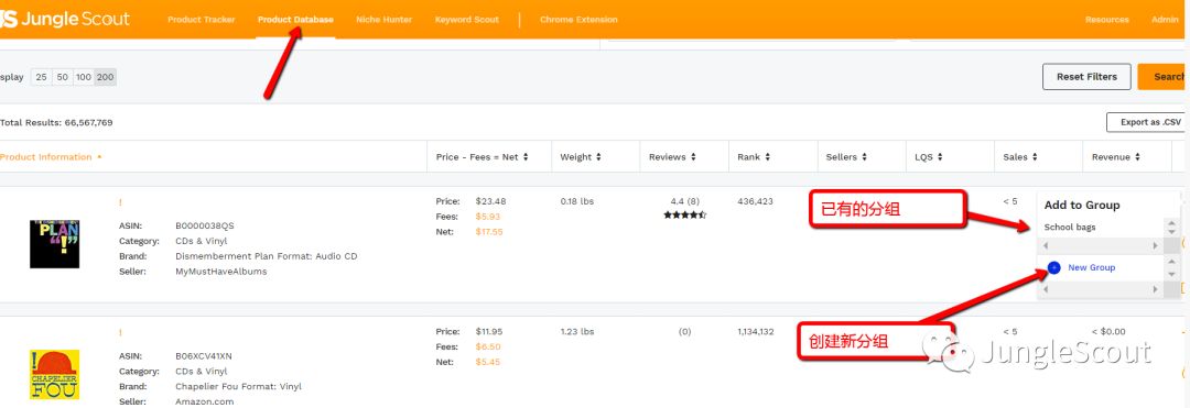 除了在Product Tracker里面直接增加分组,还可以从Product Database和Niche Hunter新增分组。