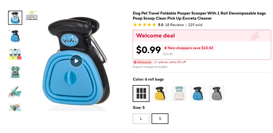 我在速卖通找到了下同样的产品,有很多,如下图这个已经卖出229单了,5星好评,但是售价只要0.99美元,怪不得说我们国家的东西都卖的太便宜了。