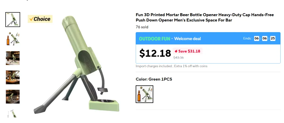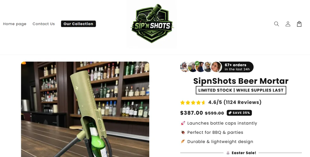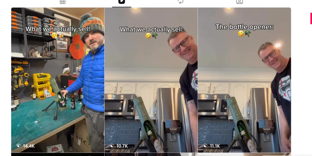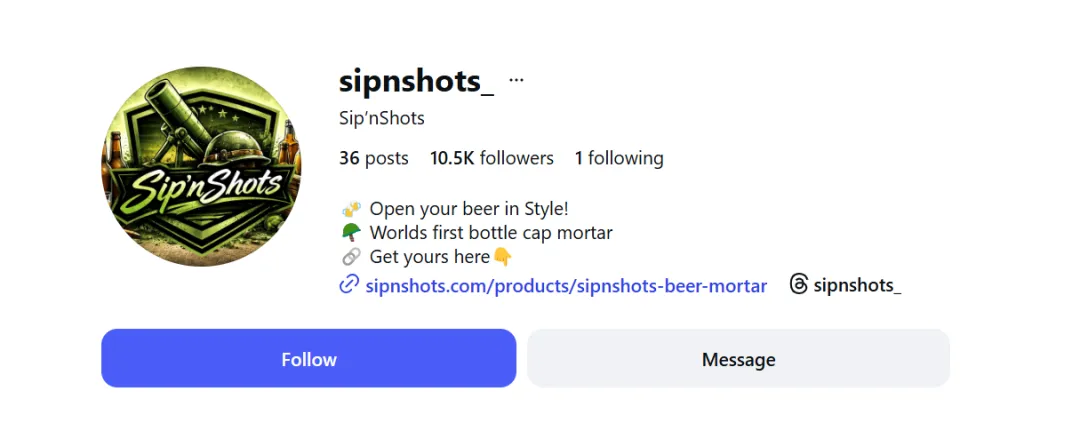 这个账户目前有36个帖子,已经有10500个粉丝了,主要就卖一款啤酒开炮器,其实也没啥大用,就是仪式感十足。