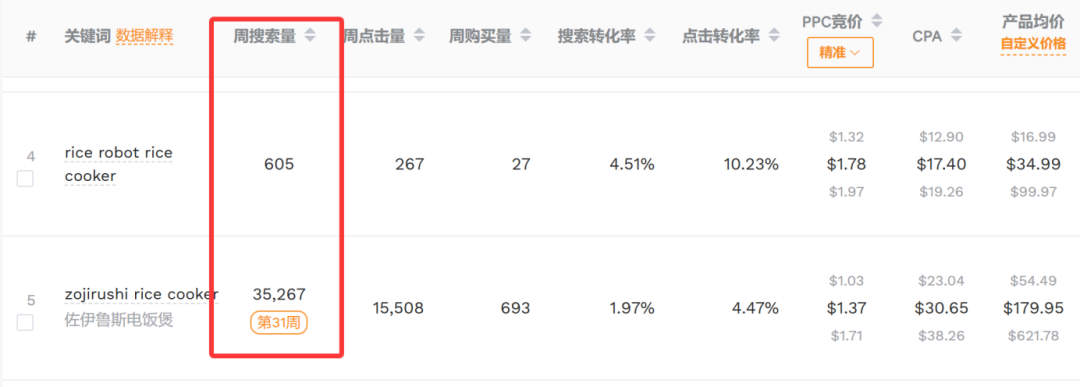 卖家精灵的关键词转化率功能中PPC竞价还可以通过匹配方式进行选择,词组,精准,广泛对应的CPC不同。