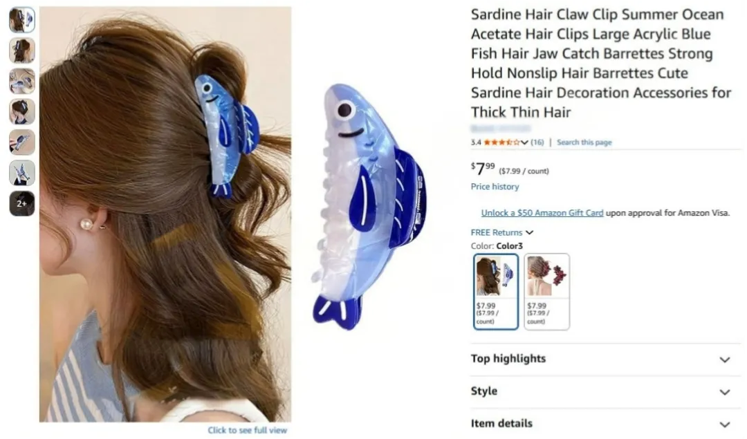 原告品牌:沙丁鱼发夹