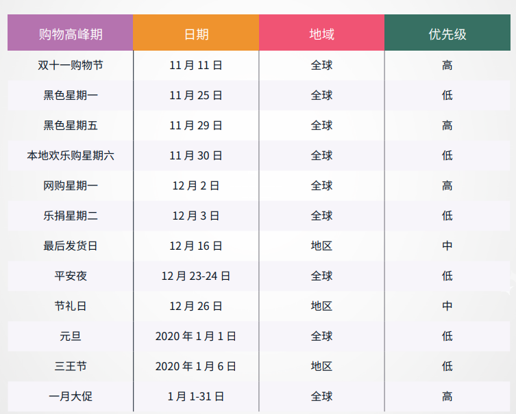 如今,节日季促销时间已从十月底延伸到了次年一月。虽然这段时间的竞争确实很激烈,但如果商家计划妥当并占得先机,就可能在此期间赚到丰厚的利润。那作为卖家,在节日季我们应该怎样做呢?下面一起来看下购物高峰期分析和营销策略。